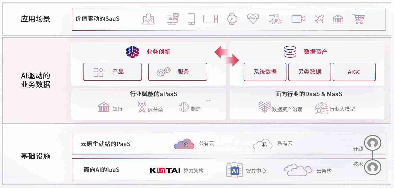 数字时代,,围绕企业数字化转型的关键要素,,okpay钱包数码开创性的提出数云融合战略和技术体系框架,,,,着力在云原生、、、、数字原生、、、、AI原生和信创产业上架构产品和服务能力,,,,为处在不同数字化转型阶段的快消零售、、汽车、、金融、、、医疗、、、政企、、、、教育、、运营商等行业客户提供泛在的敏捷IT能力和融合的数据驱动能力,,,构建跨界融合创新的数字业务场景和新业务模式,,,,助力企业级客户建立面向未来的核心能力和竞争优势,,,全面推动社会的数字化、、、智能化转型升级。。。。